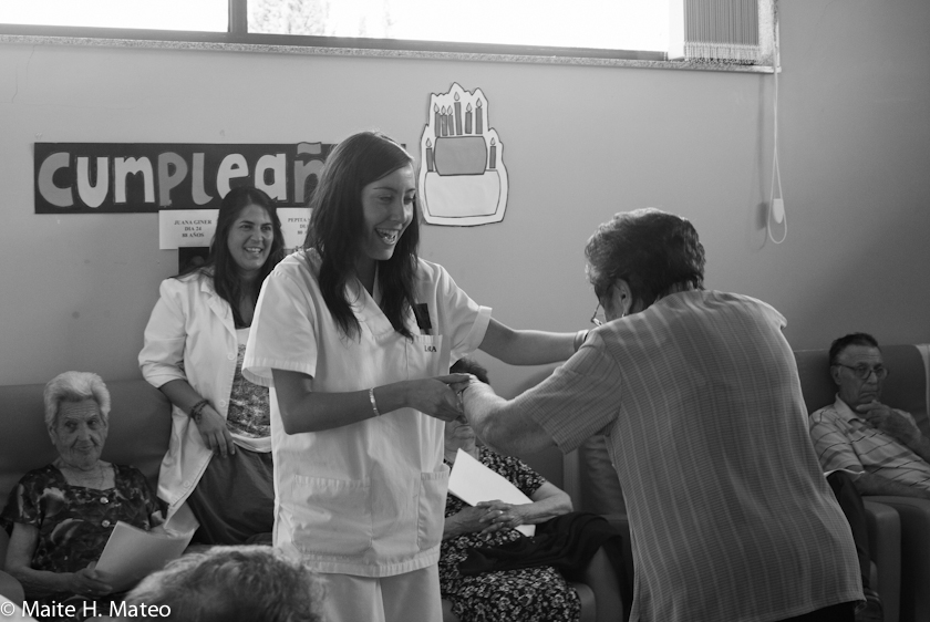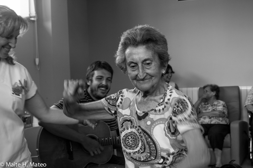 Sorprendidos quedaron los alumnos de este centro y mas todavía las alumnas, cuando vieron aparecer a este joven apuesto, guitarra en mano. Su sonrisa conquistó a todos en segundos, sacando el lado mas artista de los presentes. El repertorio, acorde con el público, fue de lo mas animado. Desde “Maria de la O” hasta “Mi Carro me lo robaron” Todo un deleite para estos estudiantes del olvido que no pudieron reprimir las ganas de bailar o llorar. Y es que, el Alzheimer se empeña en traer al presente caprichosos recuerdos del pasado. A buen seguro muchos de ellos se enamoraron con alguna de estas canciones o “festearon” como dicen por aquí, en la plaza de algún pueblo vecino.