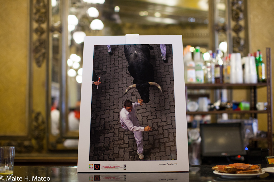 Horas después ha tenido lugar la entrega de premios del II Concurso Internacional de Fotografía del Encierro para Profesionales Acreditados que organiza el Ayuntamiento de Pamplona. El ganador, Jonan Basterra, se ha emocionado. Quizás no se trate del galardón más importante que un fotógrafo pueda recibir, pero el trofeo en forma de poste, ese poste que cada año abrazamos durante ocho días mientras buscamos la imagen de nuestros sueños, es incomparable.