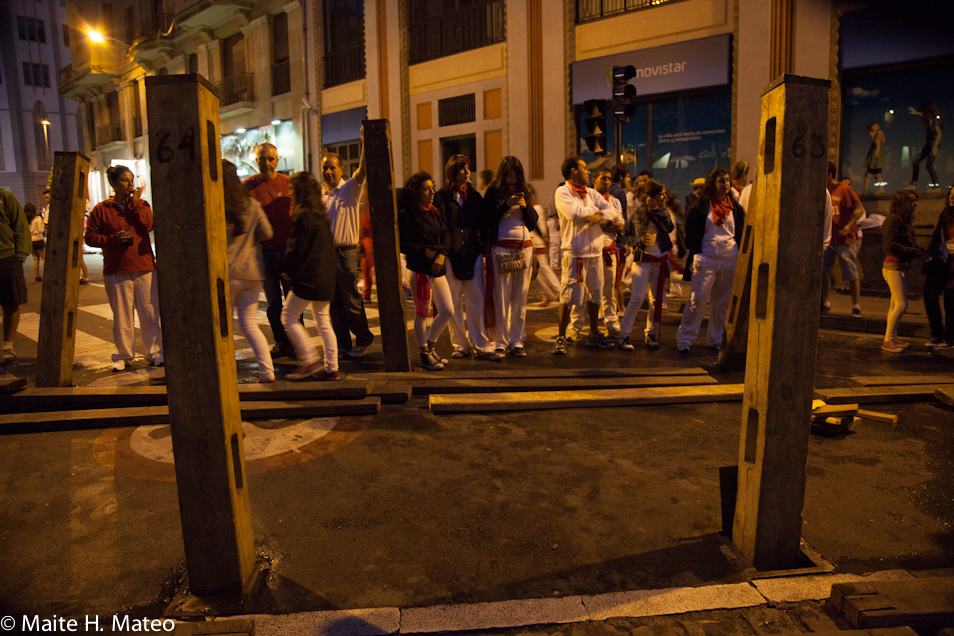 Todavía me tiemblan las piernas cuando bajo del vallado. Y es entonces cuando me doy cuenta de que no ha ocurrido nada trascendente, ni cornadas ni caídas graves, tan sólo un par de carreras bonitas. Una sensación contradictoria me invade. Me alegra que no haya heridos, pero sé que un amago de cornada me hubiera dado una foto espectacular. Son las sensaciones encontradas que cada año revuelven las tripas de los fotógrafos que cubren los encierros, imposibles de explicar o justificar si no se han vivido.