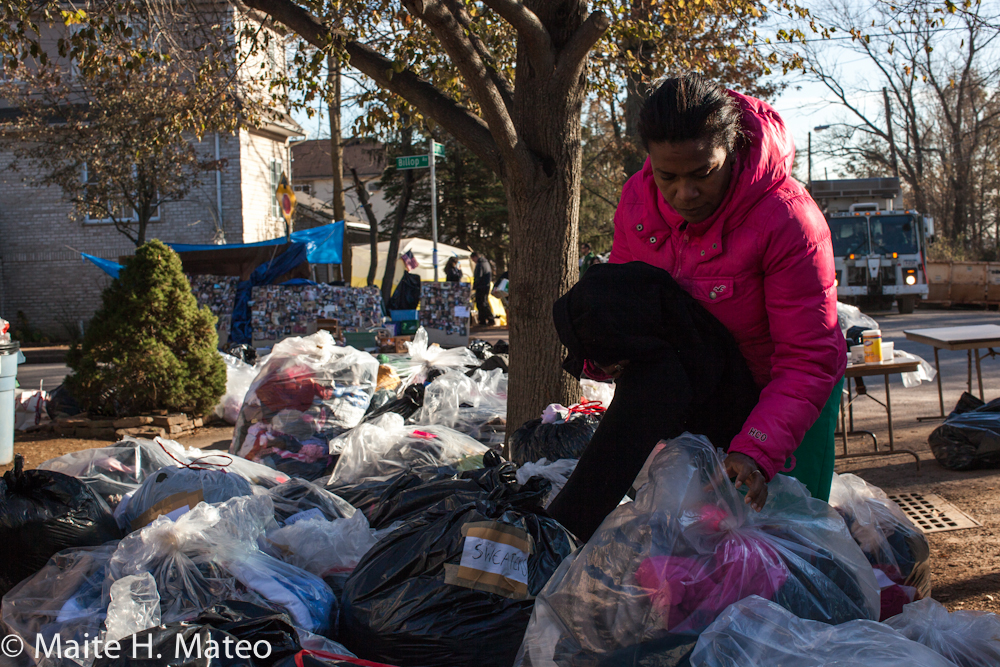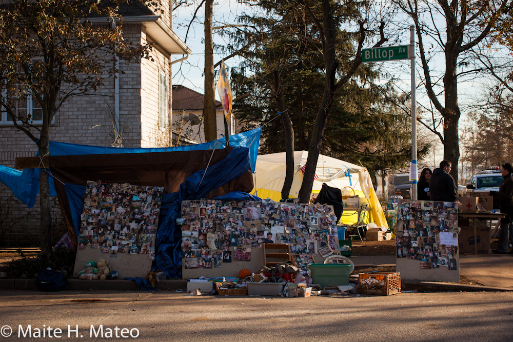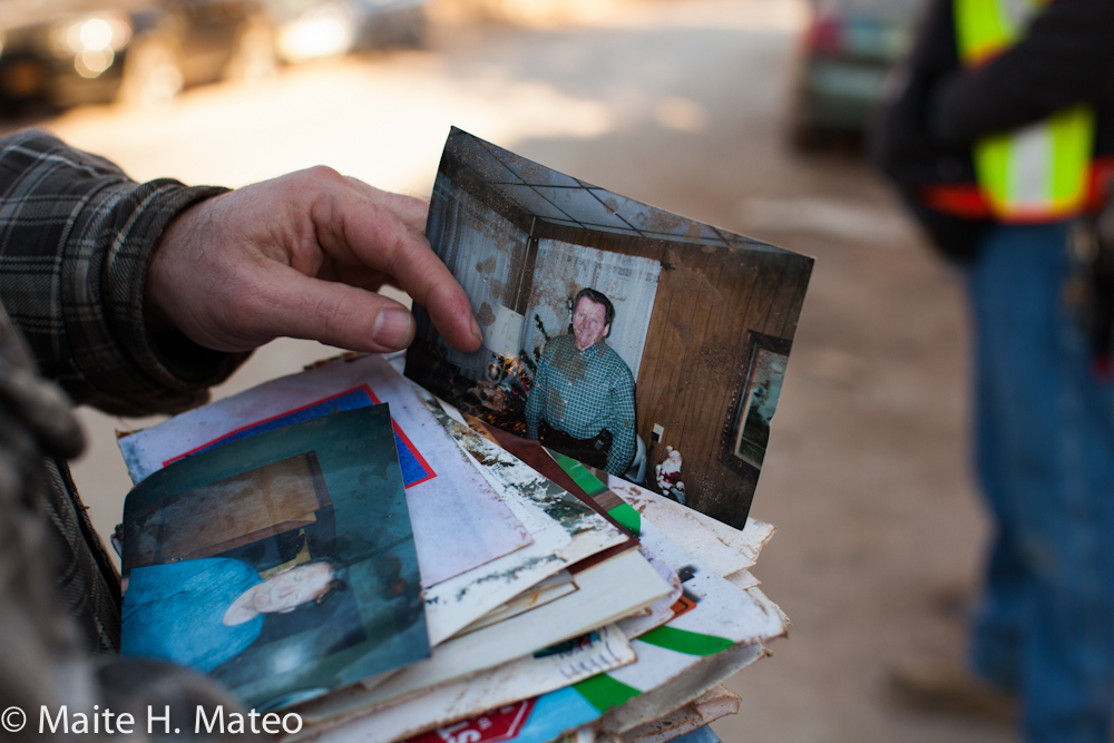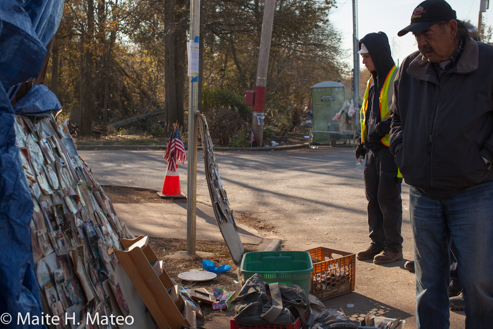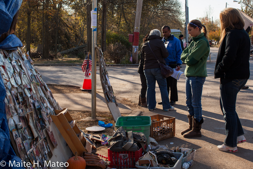 Montañas de recuerdos que volaron a su antojo por capricho de ‘Sandy’. Los vecinos, atraídos por este mural atípico, no tardaron en acercarse y comprobaron con alegría que las fotografías de sus vidas habían sobrevivido.