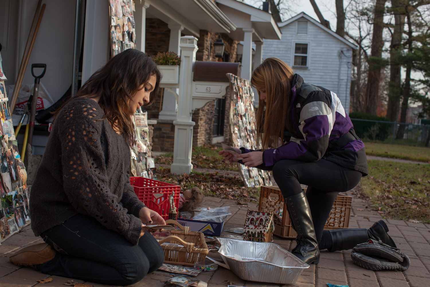 Staten Island, Tottenville-November 15,2012. Amanda Casella 17 at the door of his home with his girlfriend Lauren Sobotta 15 years, sorting photos and other objects they found in the area devastated by the hurricane.